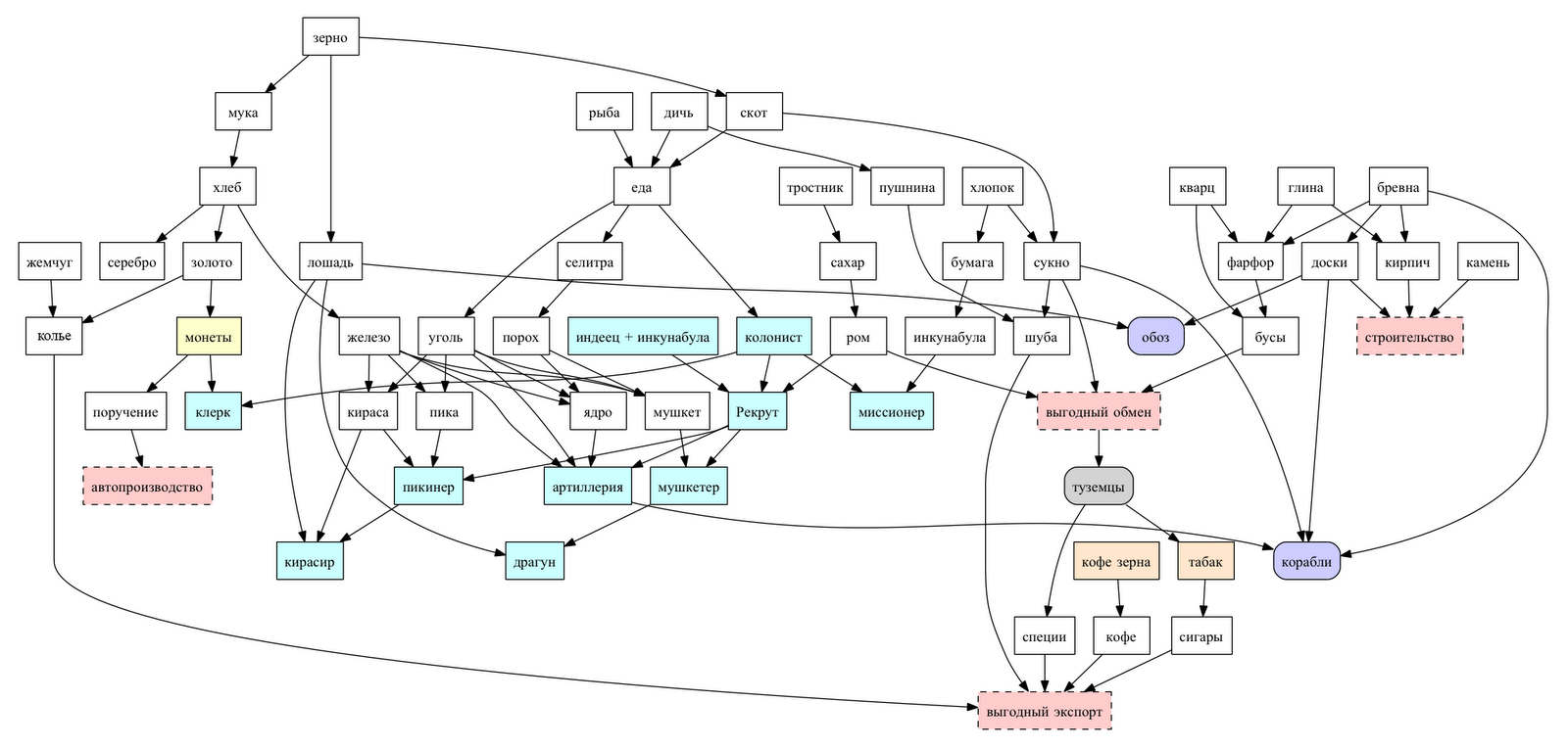Я таки дико извиняюсь, но мой просмотр форума не привел к ответу на тревожащие меня вопросы - какое сырье откуда берется и что потом с ним делать (кроме как продавать)? Какое здание что производит - видно перед постройкой, но, какое сырье или товар нужен для получения этого производства? Какое сырье и/или товар нужны для производства другого товара или юнита? Как их соединять? Может быть создать что-то типа ветки? Например, спасибо Маркизу, он рассказал, как произвести колонистов и из чего (http://forum.colonizers.ru/index.php?showtopic=10), а вот что строить и добывать, если мне захотелось сделать (к примеру) шубу? Заранее благодарен.